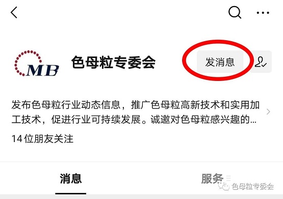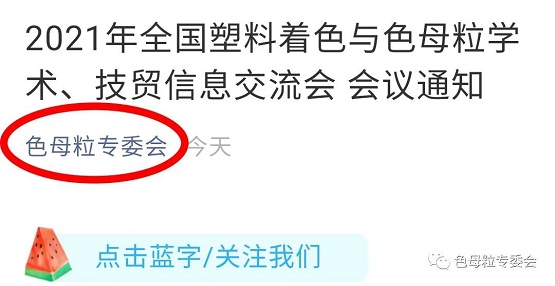 ① 点击本文左上角处“色母粒专委会”,进入“色母粒专委会”公众号