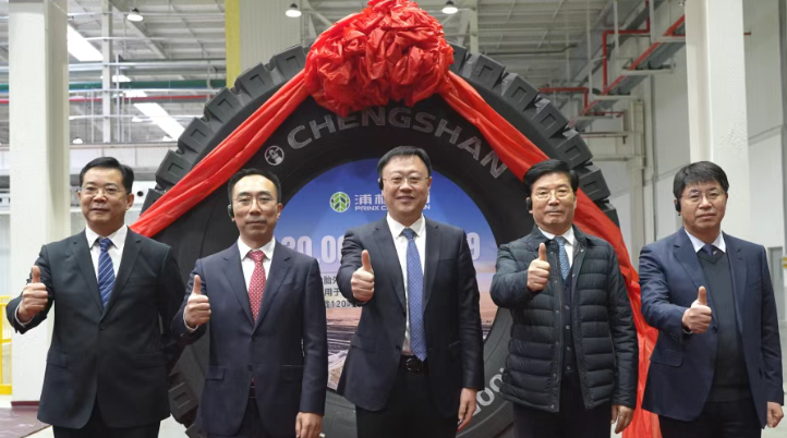 【炭黑产业网】1月21日消息,1月19日,浦林成山绿色智能工厂迎来了具有里程碑意义的时刻——首条非公路巨胎30.00R51成功下线。荣成市委副书记、市长刘金军,以及成山集团和浦林成山的相关负责人一同来到现场,共同见证并参与了揭幕仪式,这一事件意味着该绿色智能工厂建设迈出了坚实且关键的一步。