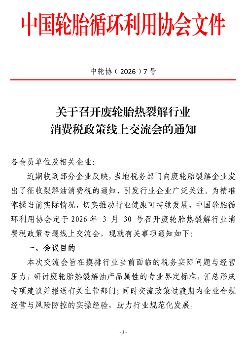 关于召开废轮胎热裂解行业消费税政策线上交流会的通知