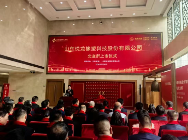 【炭黑产业网】3月30日消息,今日,北京证券交易所迎来一位新成员——山东悦龙橡塑科技股份有限公司(证券简称:悦龙科技,证券代码:920188)正式敲响上市钟声,标志着其正式开启资本市场征程。此次发行,悦龙科技以14.04元/股的价格发行,开盘价即跃升至39.86元/股,发行市盈率达14.99倍,总股本为8299.32万股,其中公开发行股份2199.32万股,成功募集资金总额3.09亿元,资金将主要用于高端柔性管道的产能建设与技术升级项目。
