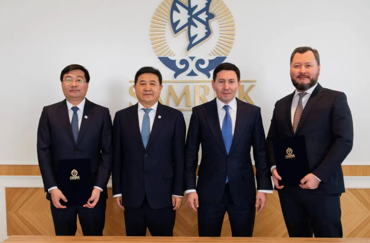 签约仪式现场,哈萨克斯坦萨姆鲁克卡泽纳基金管委会主席努尔兰扎库波夫亲临现场并主持仪式。丁二烯公司总裁成吉斯与作为联合体牵头方的广州工程公司领导王晓伟,作为双方代表签字。
