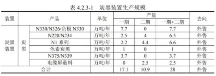 一期工程主要建设内容:17.1万吨/年炭黑生产装置、120万吨/年提质煤热解装置、30万吨/年高温煤焦油加工装置、15万吨/年低温煤焦油加工装置及配套公辅设施及环保工程。二期工程主要建设内容:10.9万吨/年炭黑生产装置、143万吨/年提质煤热解装置、15万吨/年LNG装置。