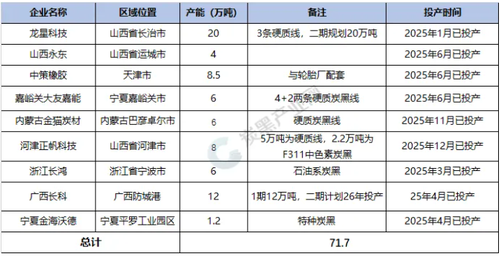 10月,广州联油三期动工,项目位于广州市黄埔区,建设2套5万吨/年石油系炭黑生产线。