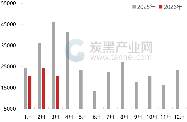3月炭黑进口量为20597.726吨,环比减少15.06%,同比减少55.41%,进口均价为2275.67美元/吨。2026年1-3月总进口量为65550.72吨,同比减少39.62%。