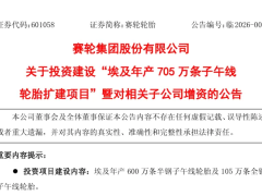 4月21日,赛轮轮胎发布公告,计划在埃及新建年产705万条子午线轮胎扩建项目。公告显示,该项目位于埃及苏伊士省泰达工业区,建设期18个月,建成后可年产600万条半钢子午线轮胎、105万条全钢子午线轮胎。项目总投资2.85亿美元,以自有资金出资,通过多层境外子公司逐级增