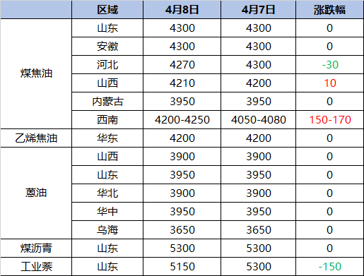 需求面,深加工轮流检修,整体开工在56%左右,变动有限;炭黑企业稳价心态偏强,采购积极。近两周,煤焦油价格稳定盘整,市场消息多变之下,价格底部维持相对高位预计会成为市场常态。