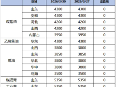 【煤焦油】3月第一周煤焦油各区域成交价格汇总